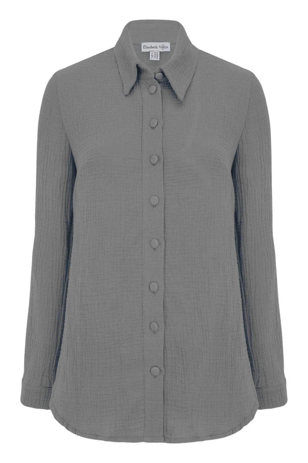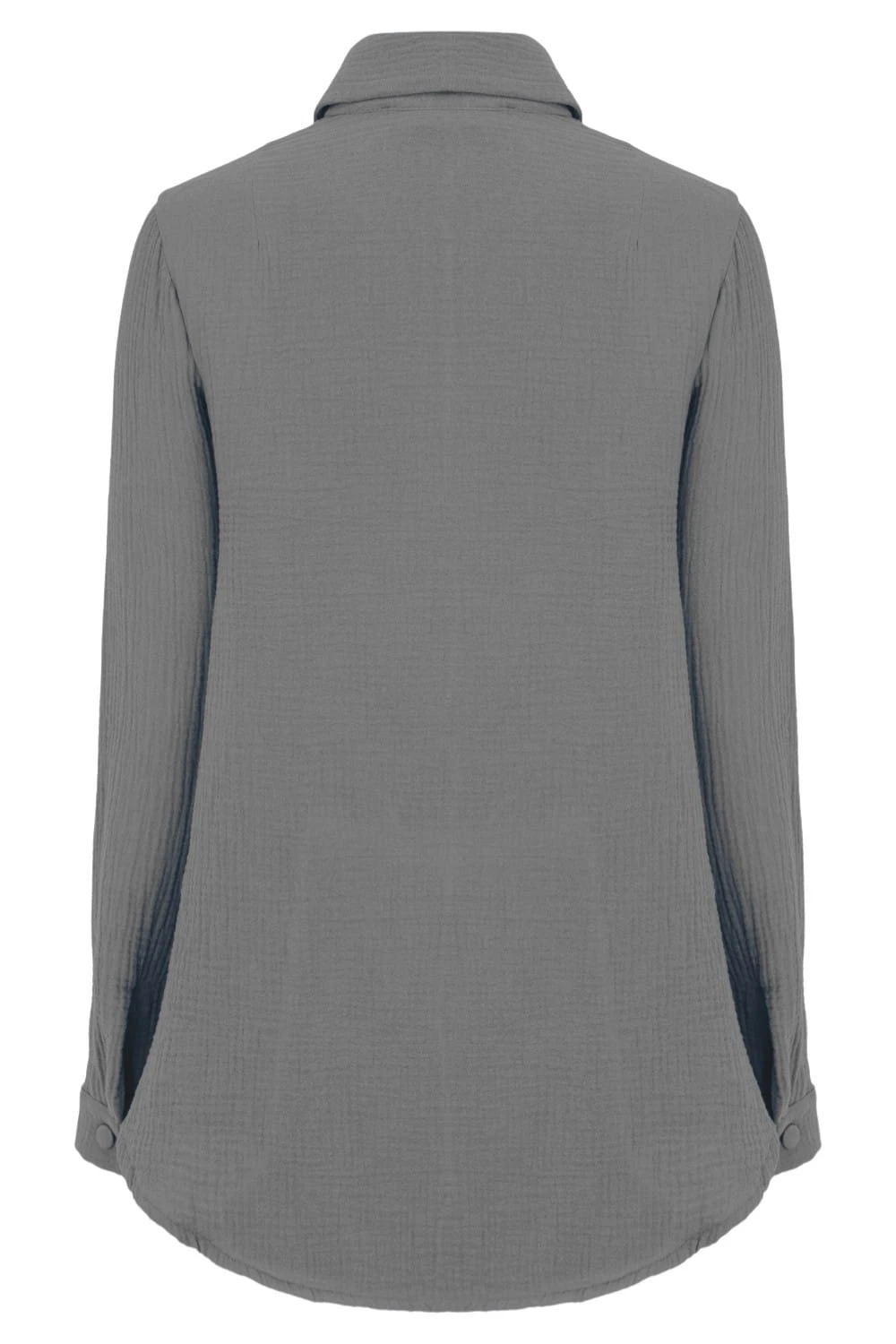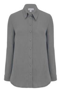 HALLIE - Frost Gray - muślinowa koszula oversized z kołnierzykiem i długimi rękawami