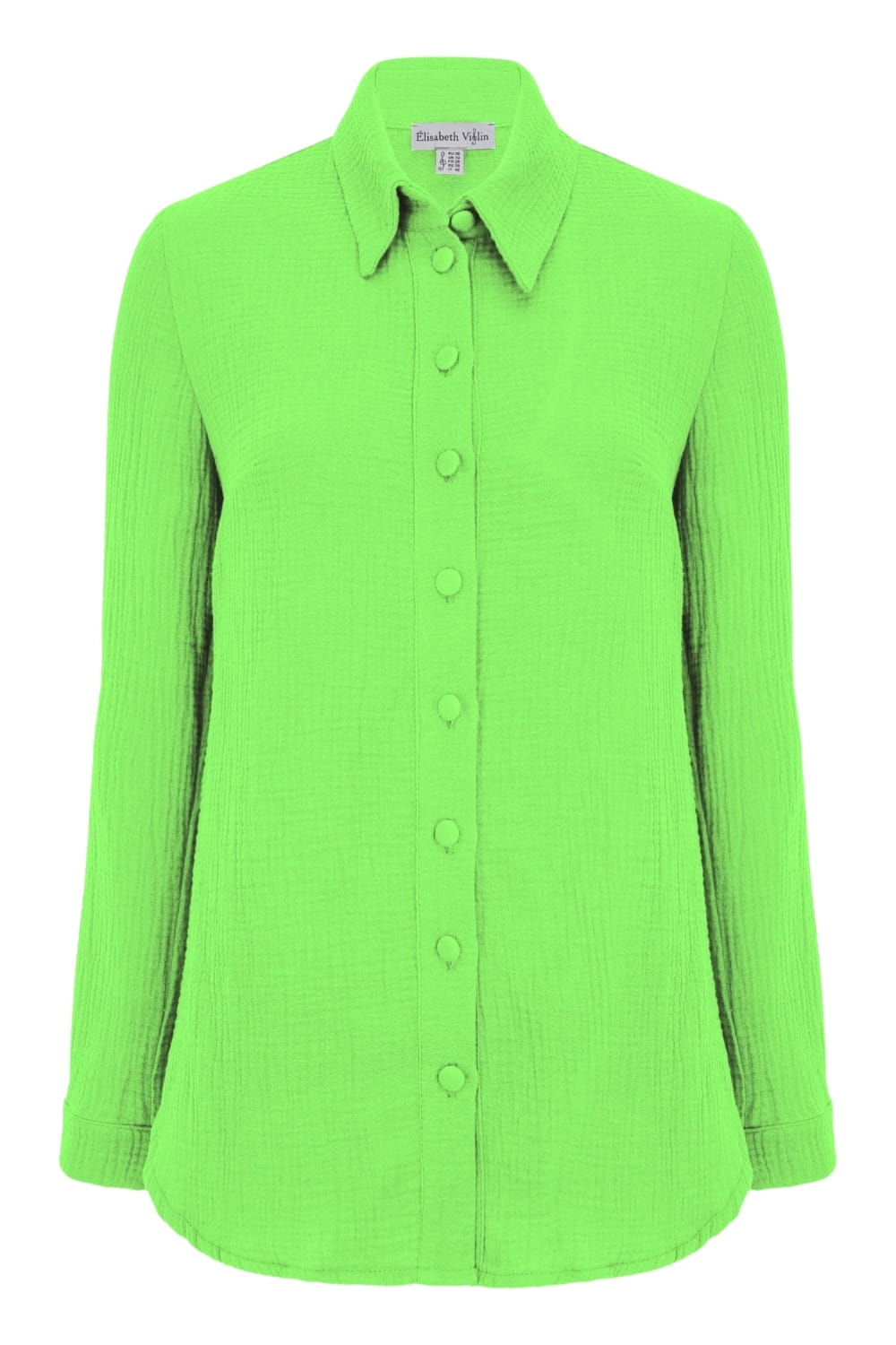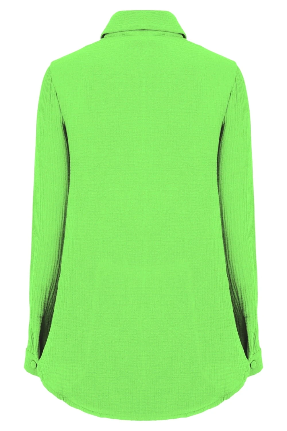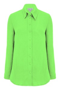 HALLIE - Green Flash - muślinowa koszula oversized z kołnierzykiem i długimi rękawami