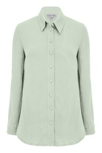 HALLIE - Green Lily - muślinowa koszula oversized z kołnierzykiem i długimi rękawami