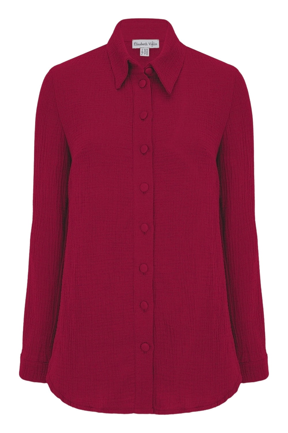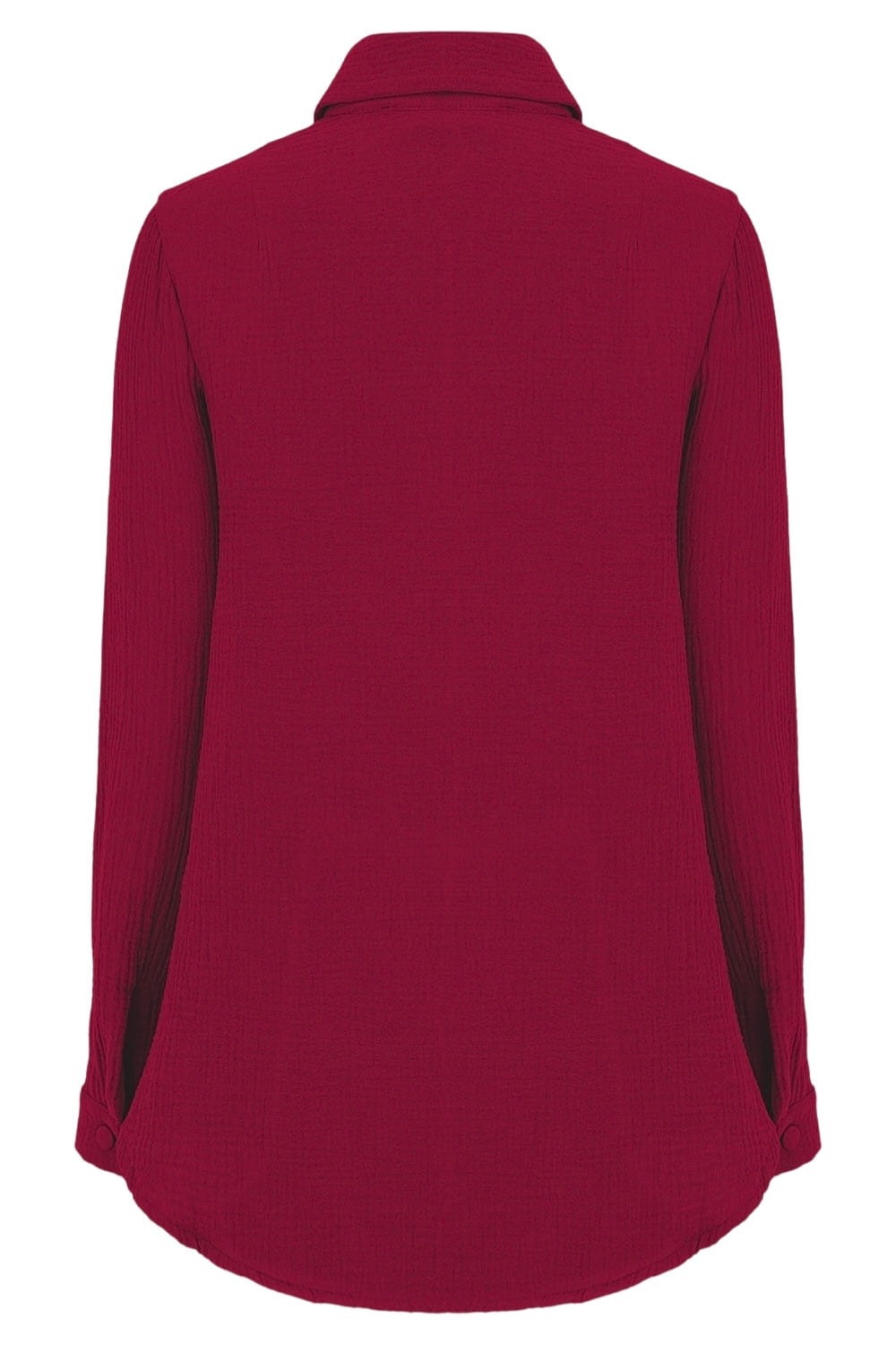 HALLIE - Jalapeño Red - muślinowa koszula oversized z kołnierzykiem i długimi rękawami