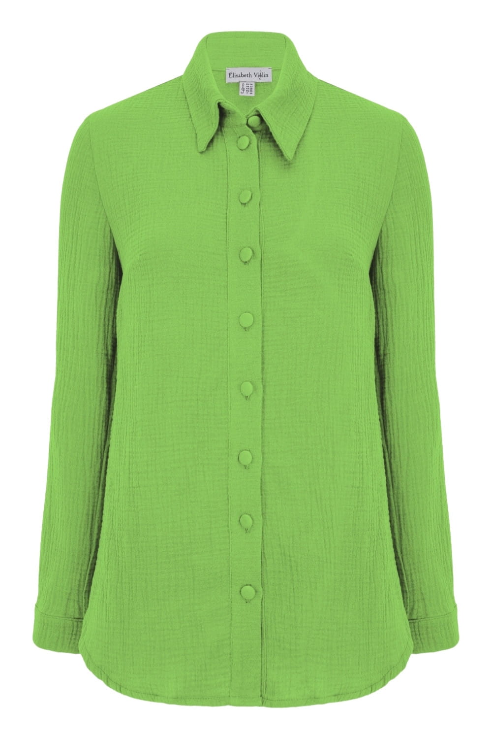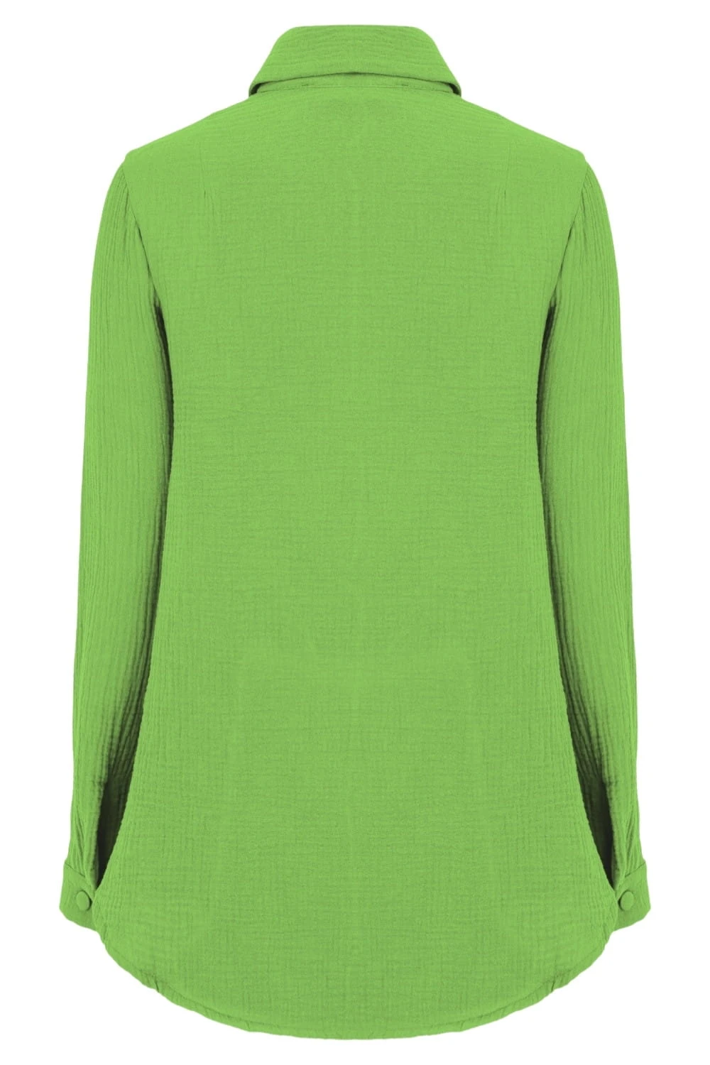 HALLIE - Kiwi - muślinowa koszula oversized z kołnierzykiem i długimi rękawami3