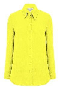 HALLIE - Lime Punch - muślinowa koszula oversized z kołnierzykiem i długimi rękawami