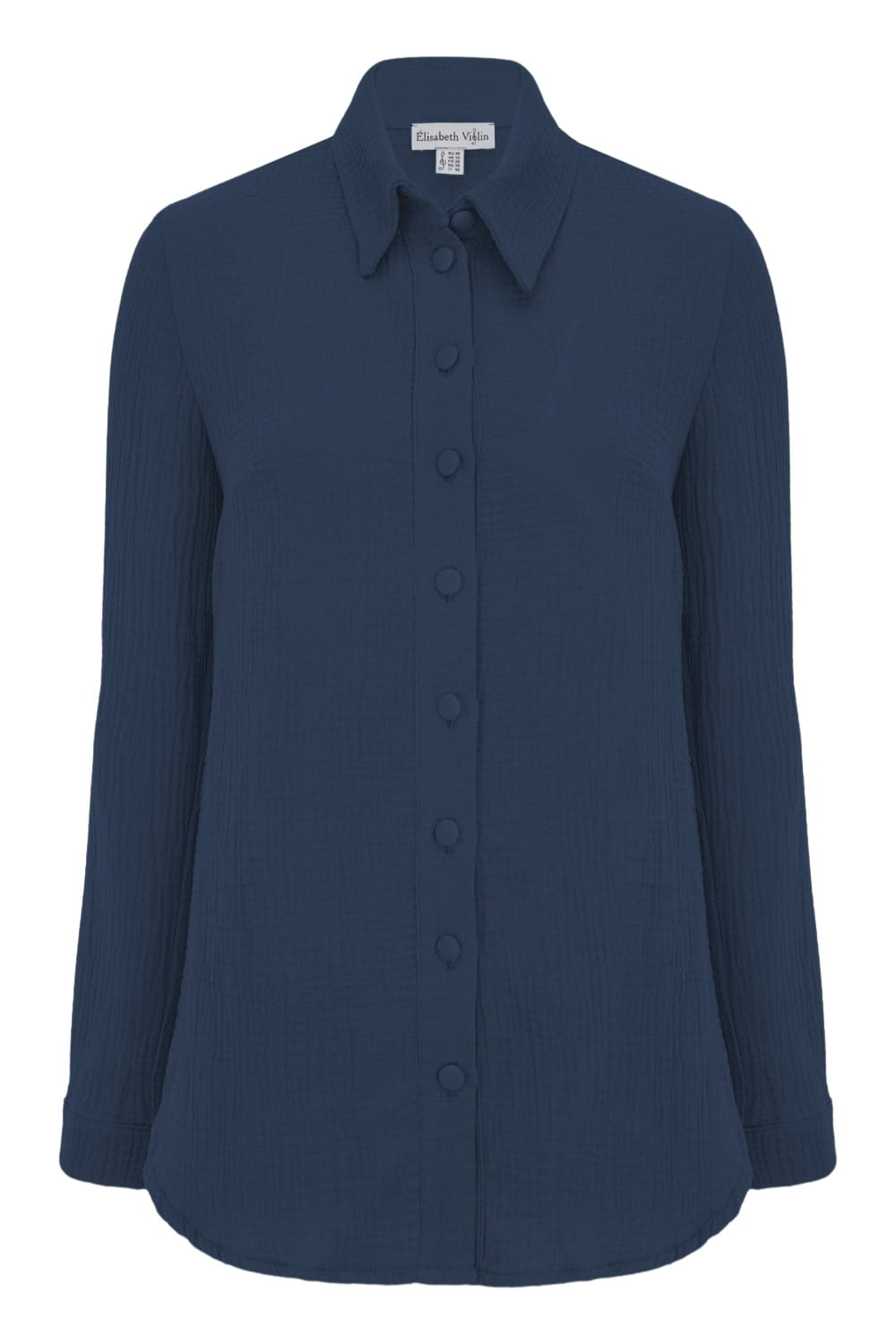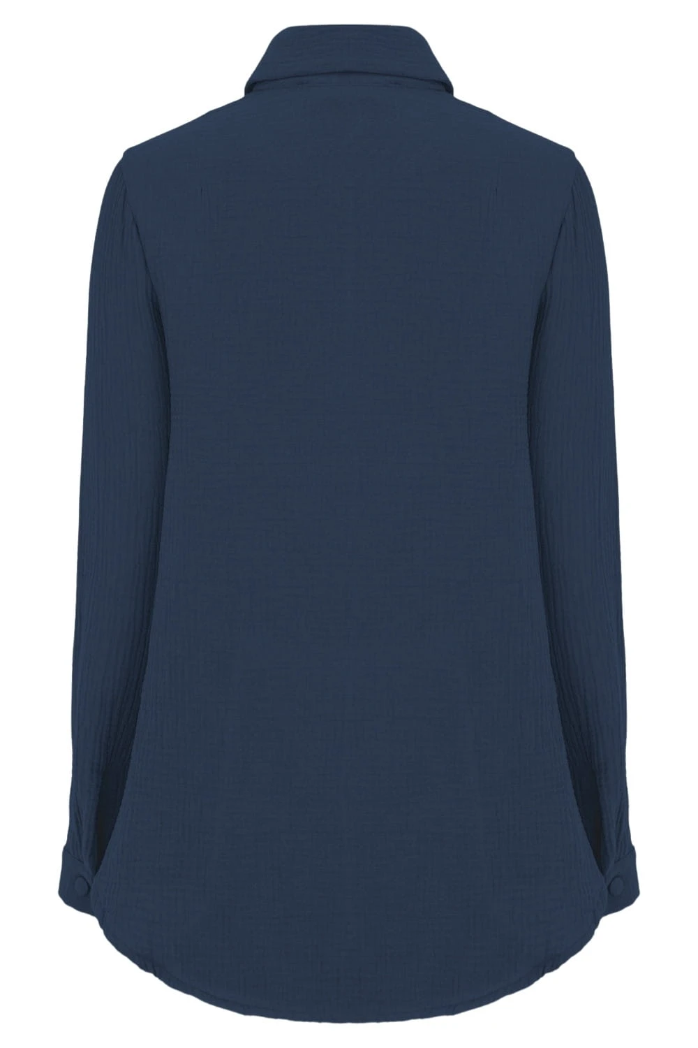 HALLIE - Orion Blue - muślinowa koszula oversized z kołnierzykiem i długimi rękawami