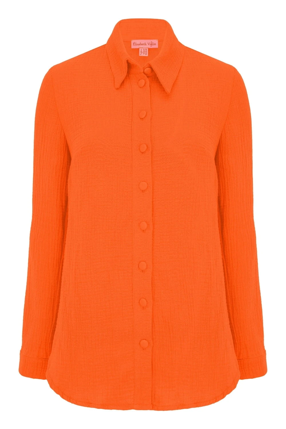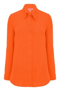 HALLIE - Persimmon Orange - muślinowa koszula oversized z kołnierzykiem i długimi rękawami