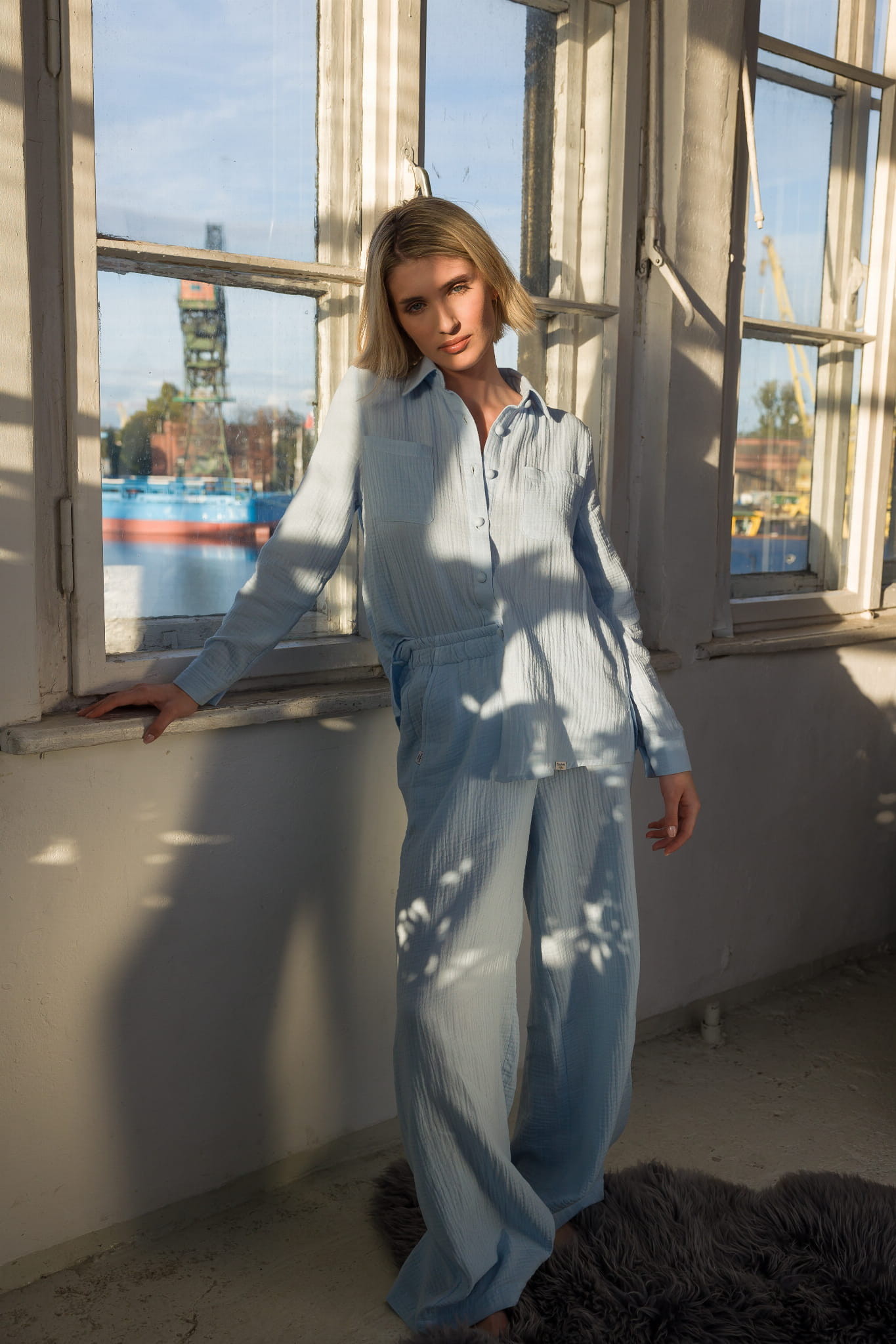 Luźna koszula o kroju oversized wykonana z bawełnianego muślinu. Jeśli chcesz, może mieć kieszenie.