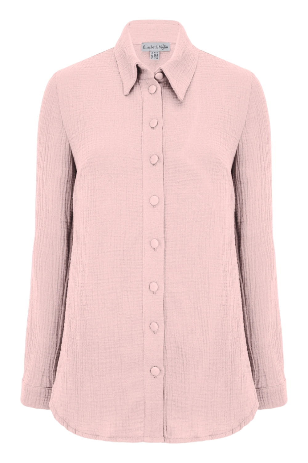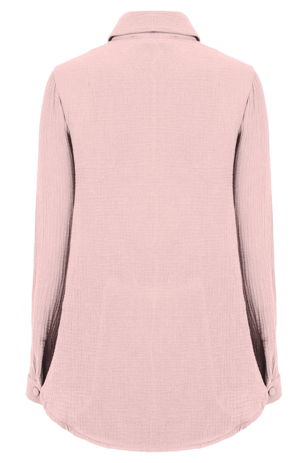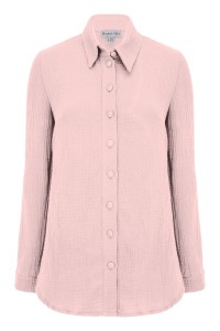 HALLIE - Pink Salt - muślinowa koszula oversized z kołnierzykiem i długimi rękawami
