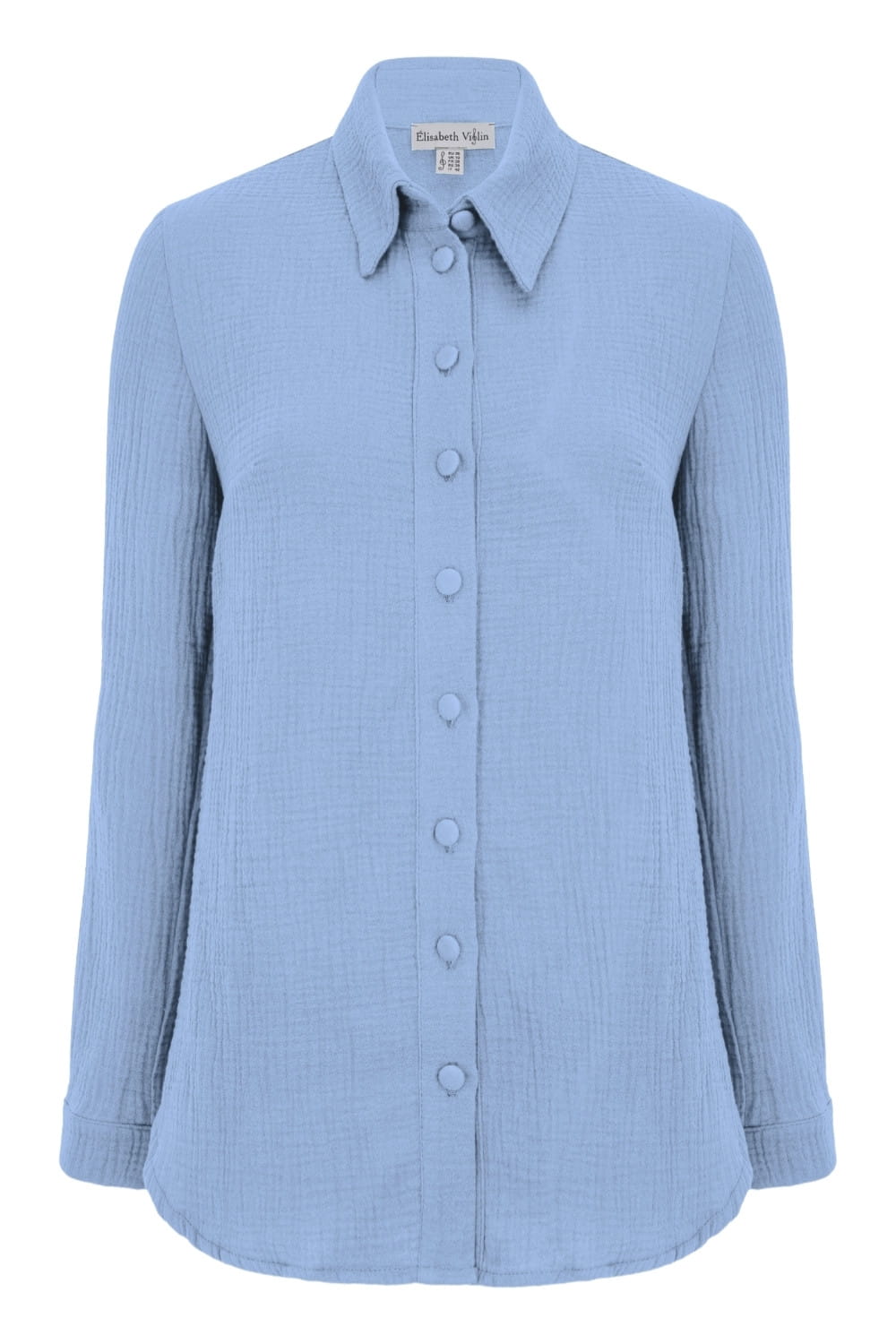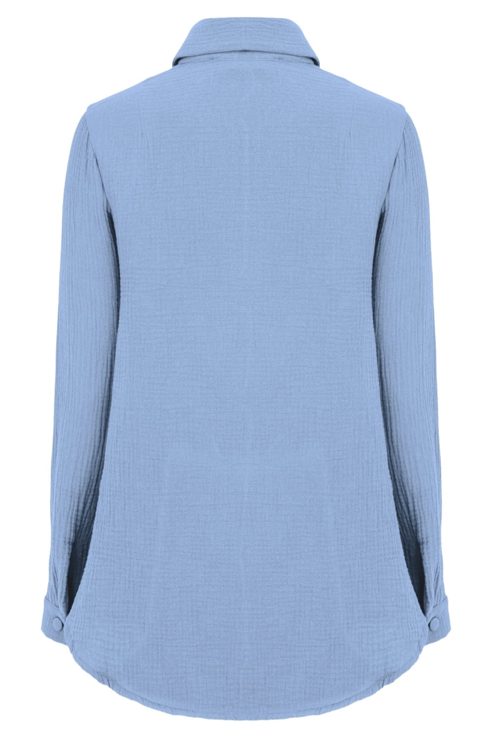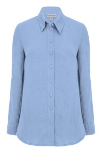 HALLIE - Placid Blue - muślinowa koszula oversized z kołnierzykiem i długimi rękawami
