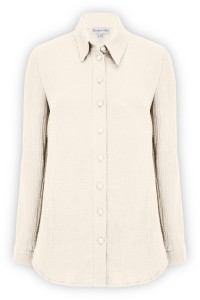Luźna koszula o kroju oversized wykonana z bawełnianego muślinu. Jeśli chcesz, może mieć kieszenie.