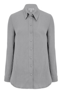 HALLIE - Silver Sconce - muślinowa koszula oversized z kołnierzykiem i długimi rękawami