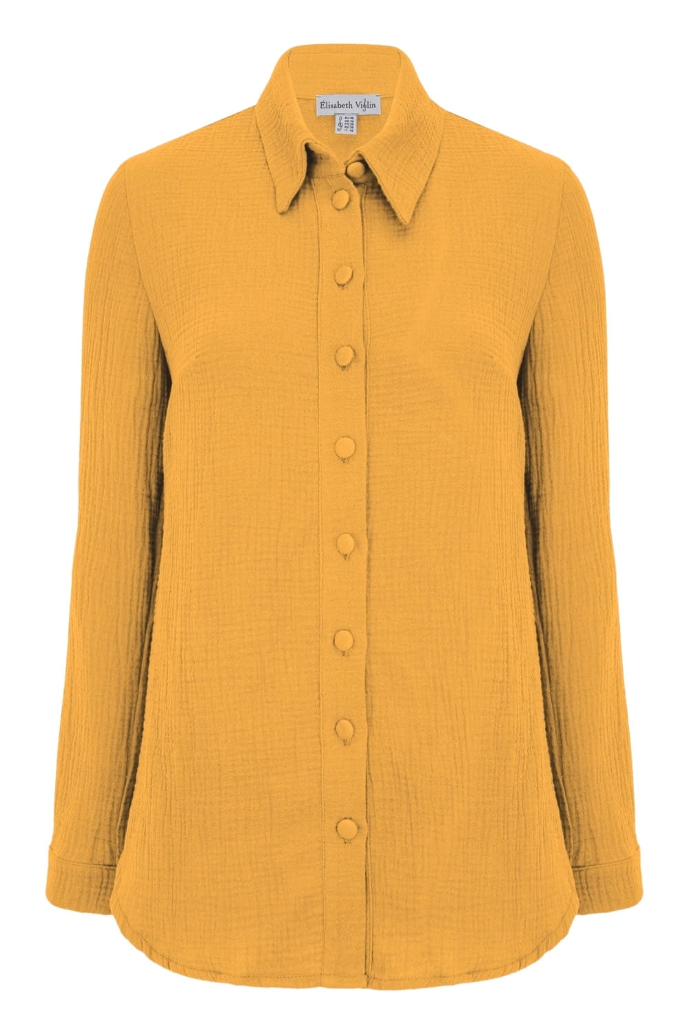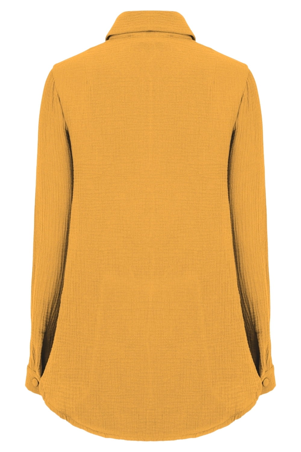 HALLIE - Sunflower - muślinowa koszula oversized z kołnierzykiem i długimi rękawami