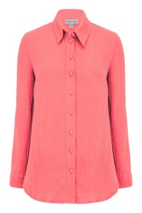 HALLIE - Tea Rose - muślinowa koszula oversized z kołnierzykiem i długimi rękawami