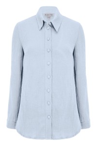 HALLIE - Winter Sky - muślinowa koszula oversized z kołnierzykiem i długimi rękawami