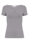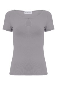 Dzianinowa bluzka z krótkim rękawem i dekoracyjnym wycięciem przy dekolcie.