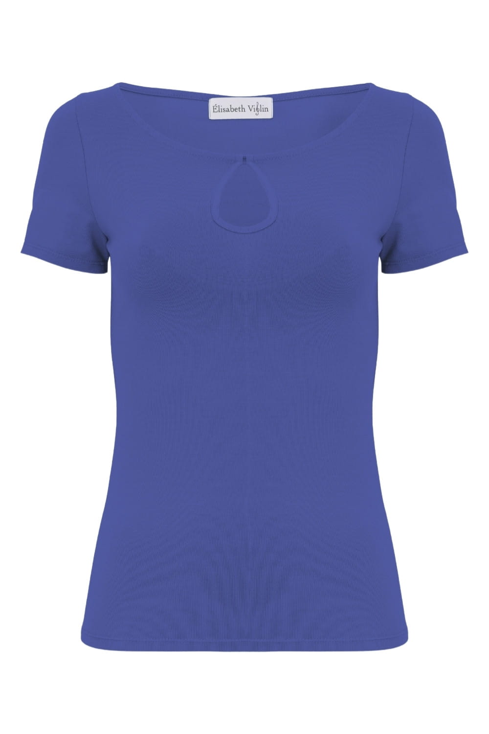 LARMA - Amparo Blue - wiskozowa taliowana bluzka z dekoltem z łezką i klasycznymi krótkimi rękawami