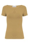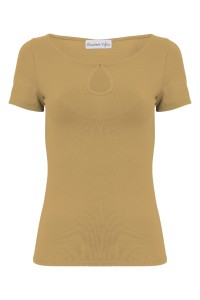 Dzianinowa bluzka z krótkim rękawem i dekoracyjnym wycięciem przy dekolcie.
