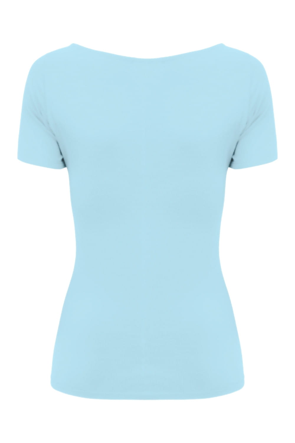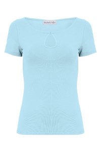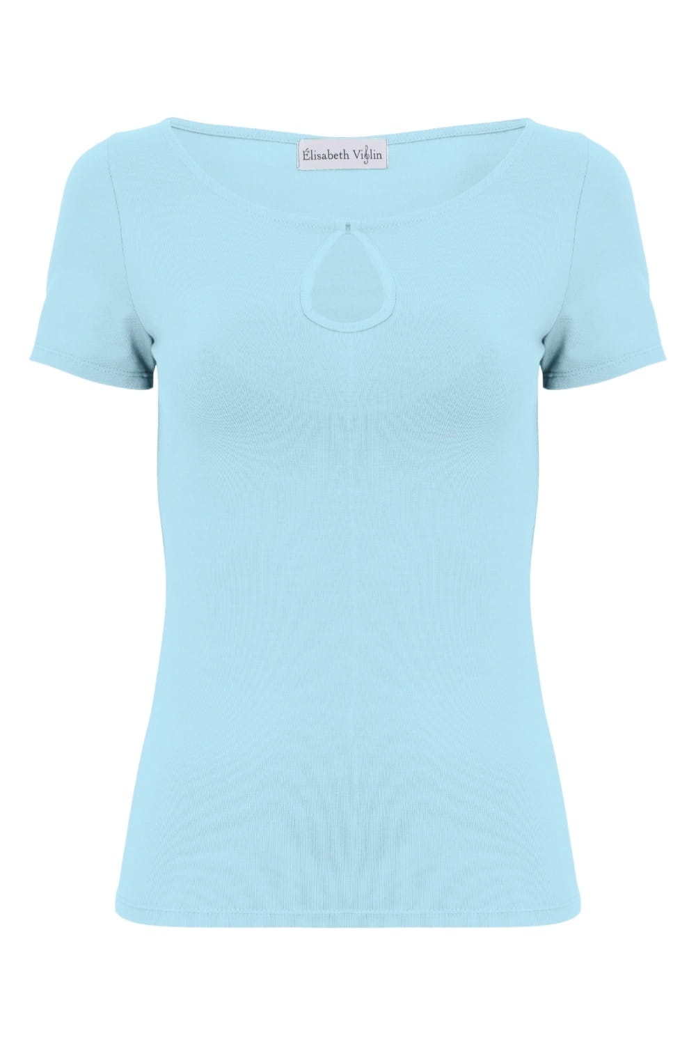 LARMA - Aquatic - wiskozowa taliowana bluzka z dekoltem z łezką i klasycznymi krótkimi rękawami