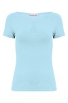 Dzianinowa bluzka z krótkim rękawem i dekoracyjnym wycięciem przy dekolcie.