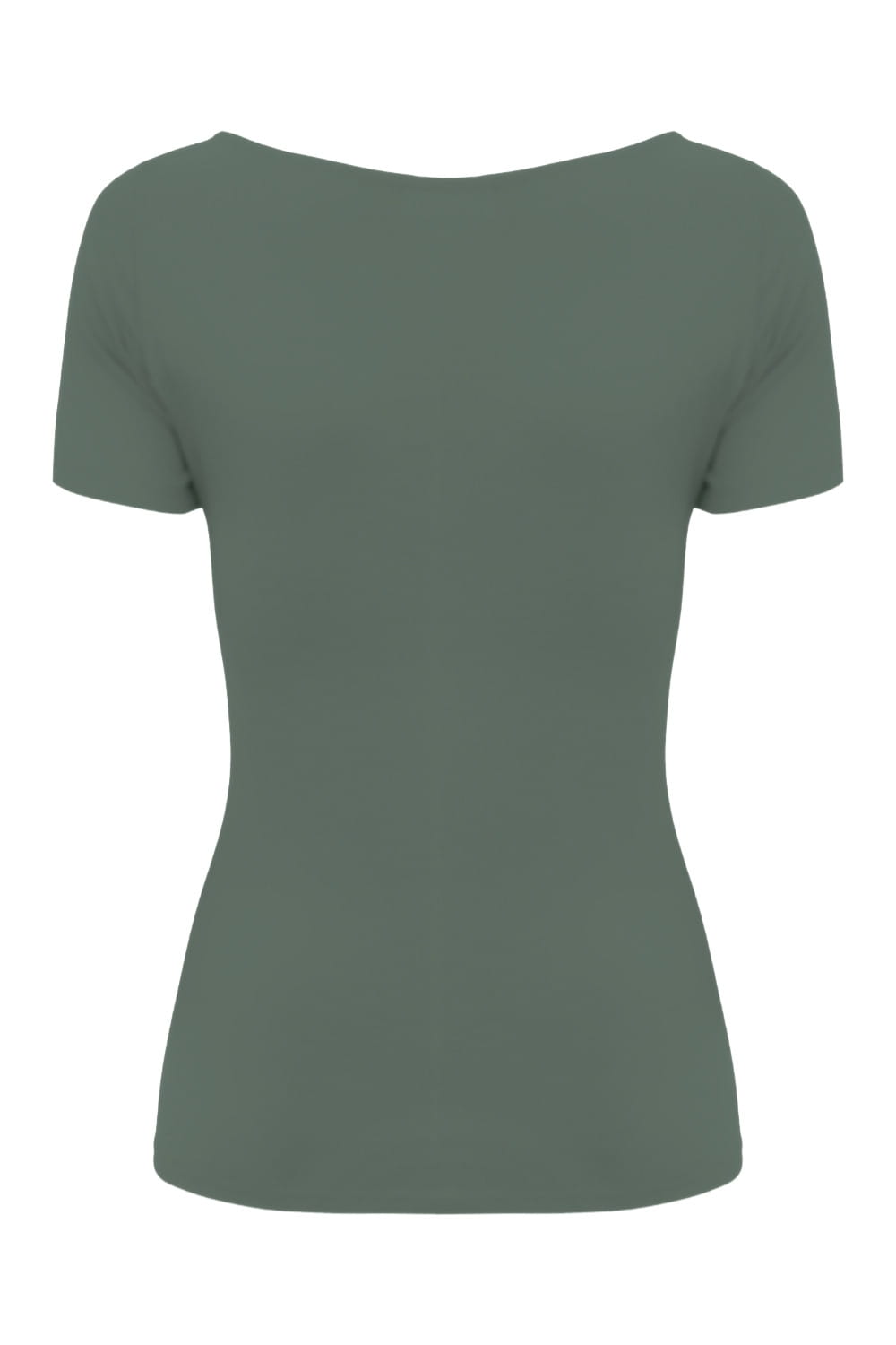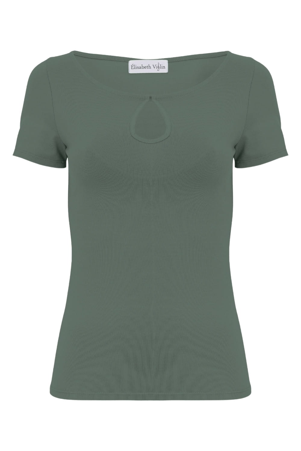 LARMA - Balsam Green - wiskozowa taliowana bluzka z dekoltem z łezką i klasycznymi krótkimi rękawami