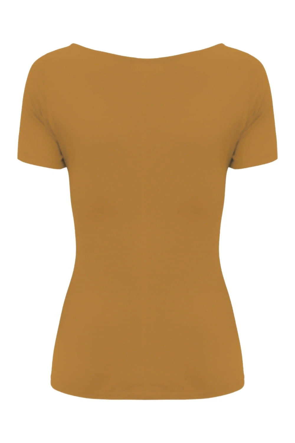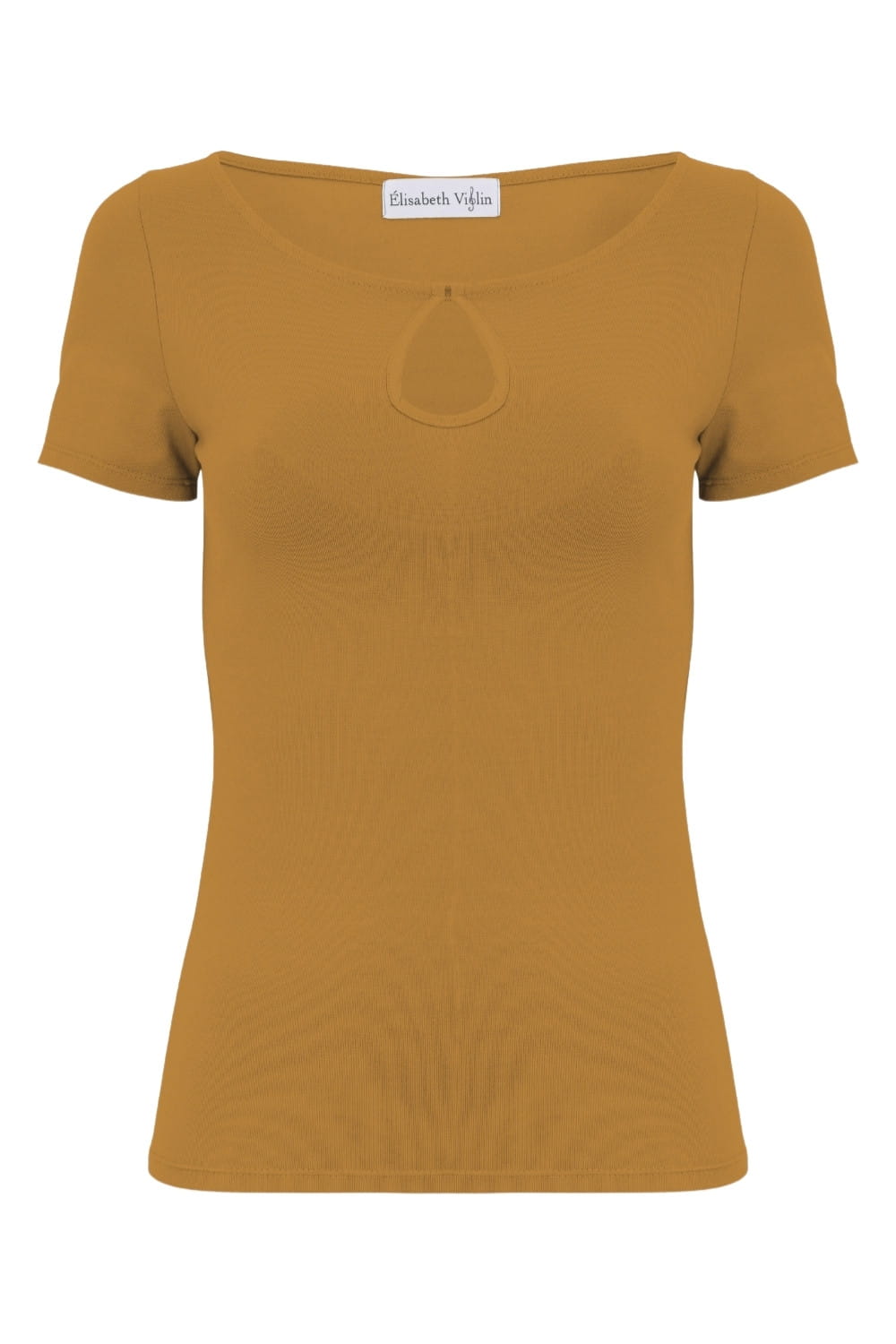 LARMA - Biscuit - bawełniana taliowana bluzka z dekoltem z łezką i klasycznymi krótkimi rękawami