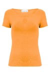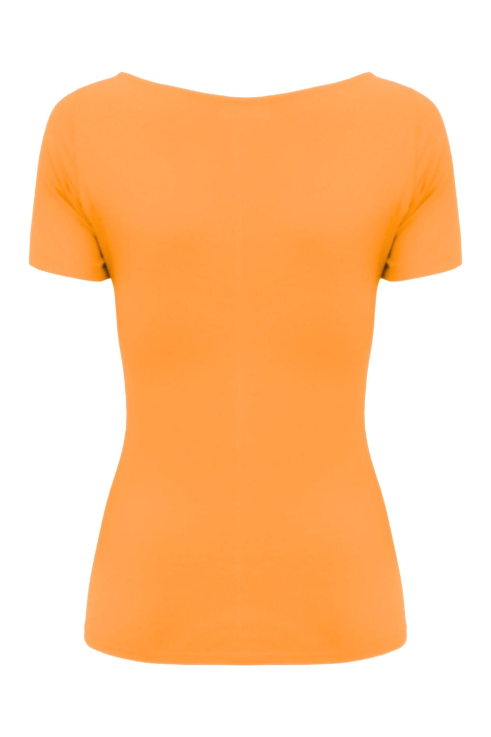 LARMA - Blazing Orange - bambusowa taliowana bluzka z dekoltem z łezką i klasycznymi krótkimi rękawami