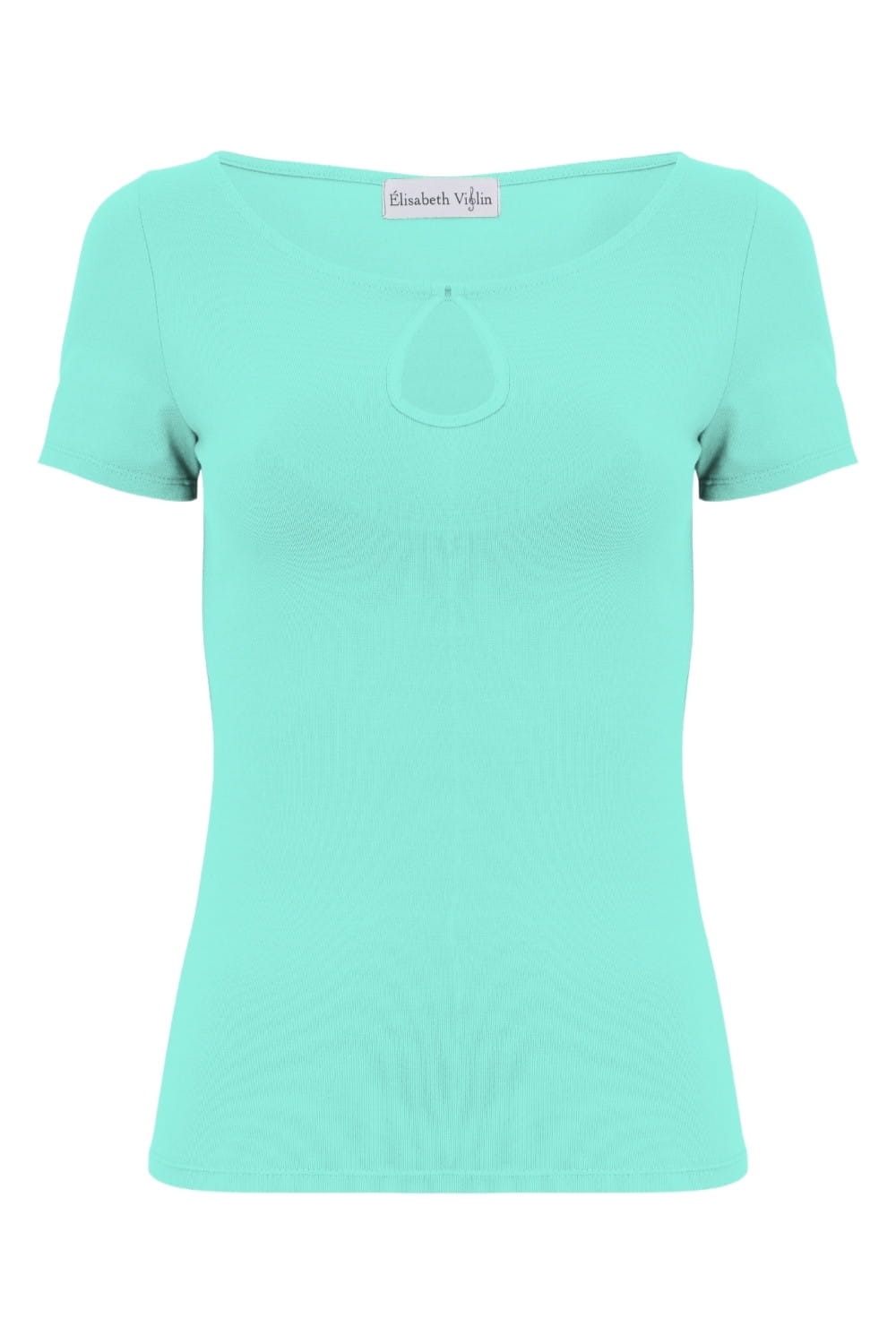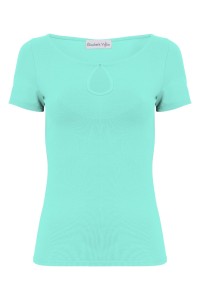 LARMA - Blue Turquoise - wiskozowa taliowana bluzka z dekoltem z łezką i klasycznymi krótkimi rękawami