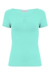 Dzianinowa bluzka z krótkim rękawem i dekoracyjnym wycięciem przy dekolcie.