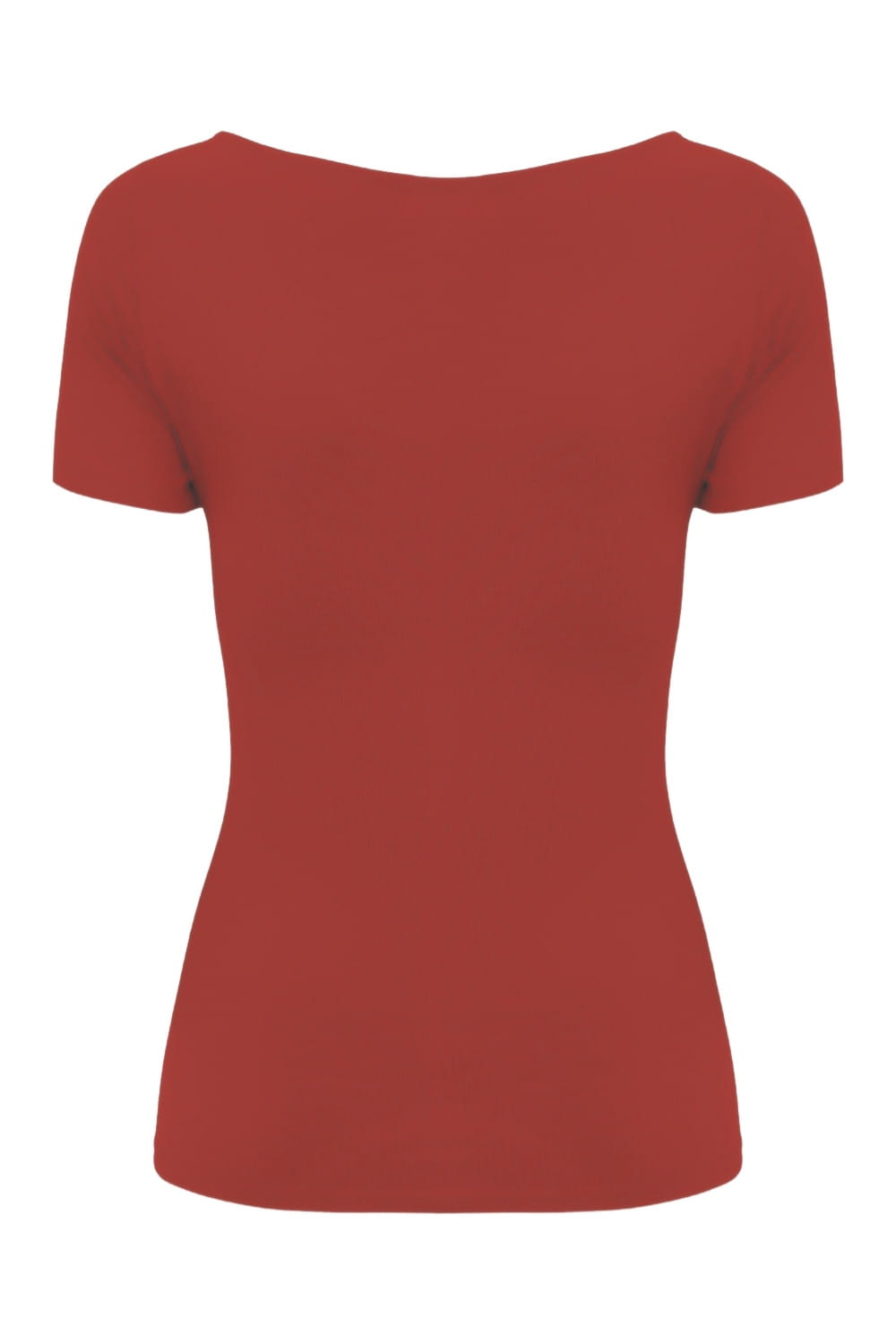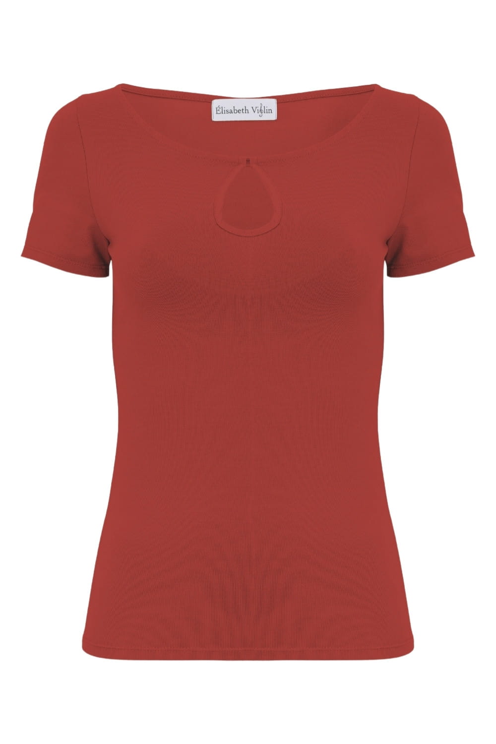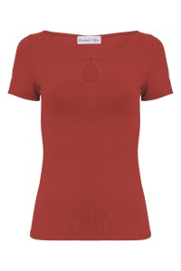 LARMA - Brick Red - bawełniana taliowana bluzka z dekoltem z łezką i klasycznymi krótkimi rękawami