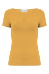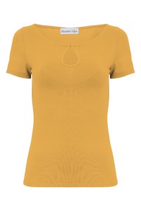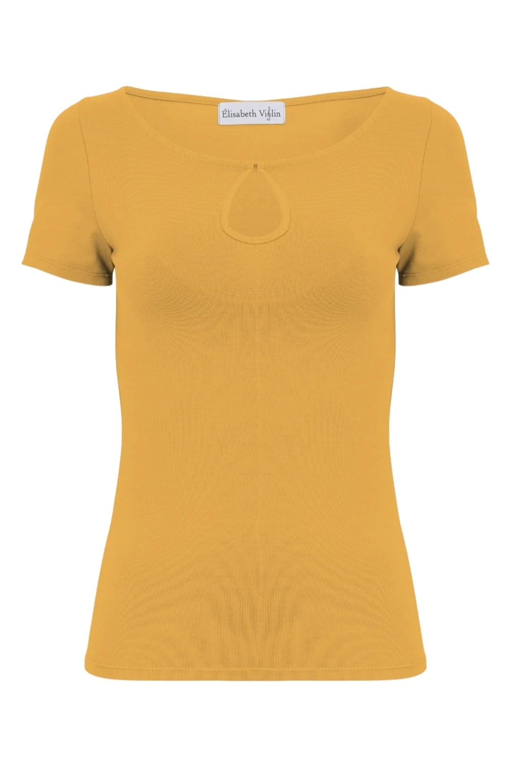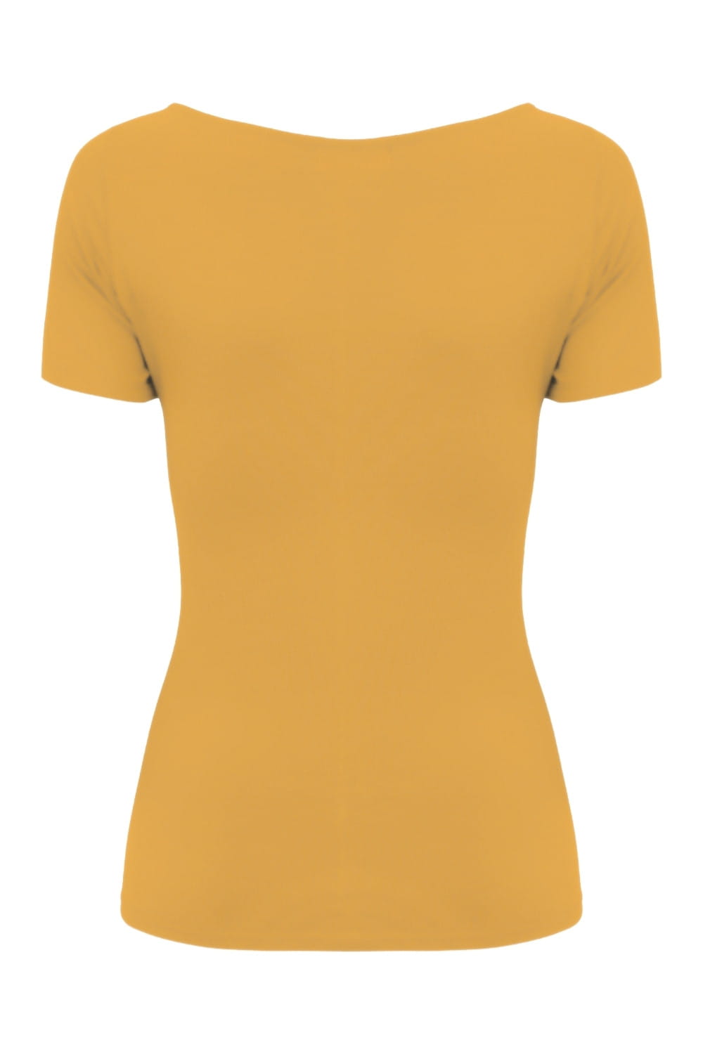 LARMA - Bright Gold - bambusowa taliowana bluzka z dekoltem z łezką i klasycznymi krótkimi rękawami