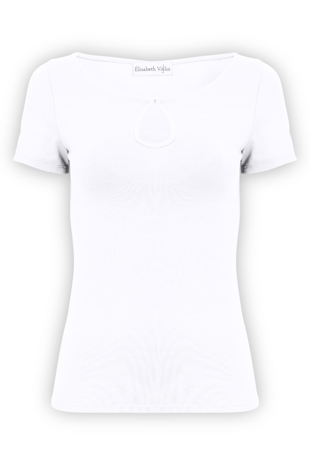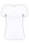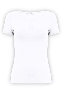 LARMA - Brilliant White - bambusowa taliowana bluzka z dekoltem z łezką i klasycznymi krótkimi rękawami