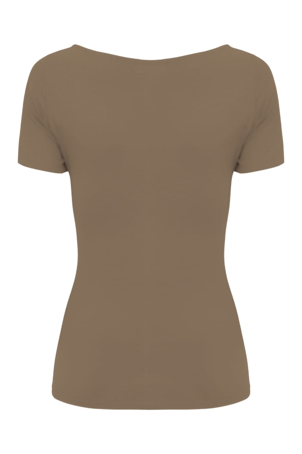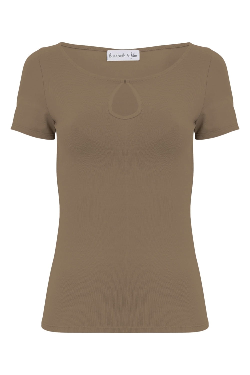 LARMA - Brindle - bawełniana taliowana bluzka z dekoltem z łezką i klasycznymi krótkimi rękawami