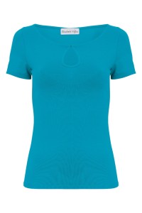 LARMA - Caribbean Sea - wiskozowa taliowana bluzka z dekoltem z łezką i klasycznymi krótkimi rękawami