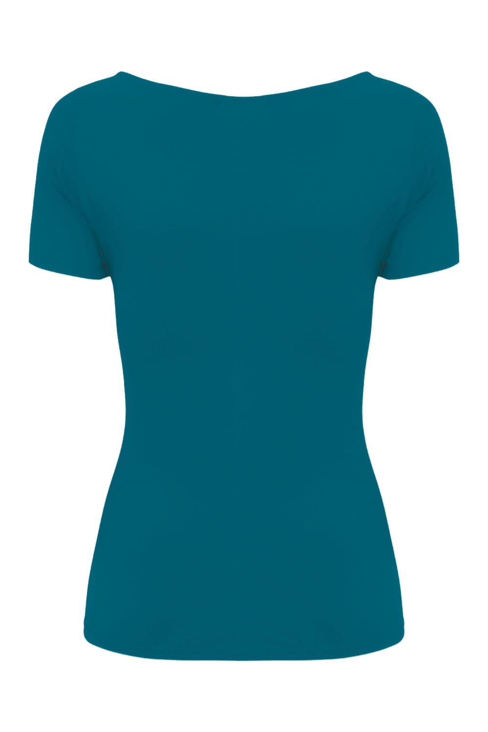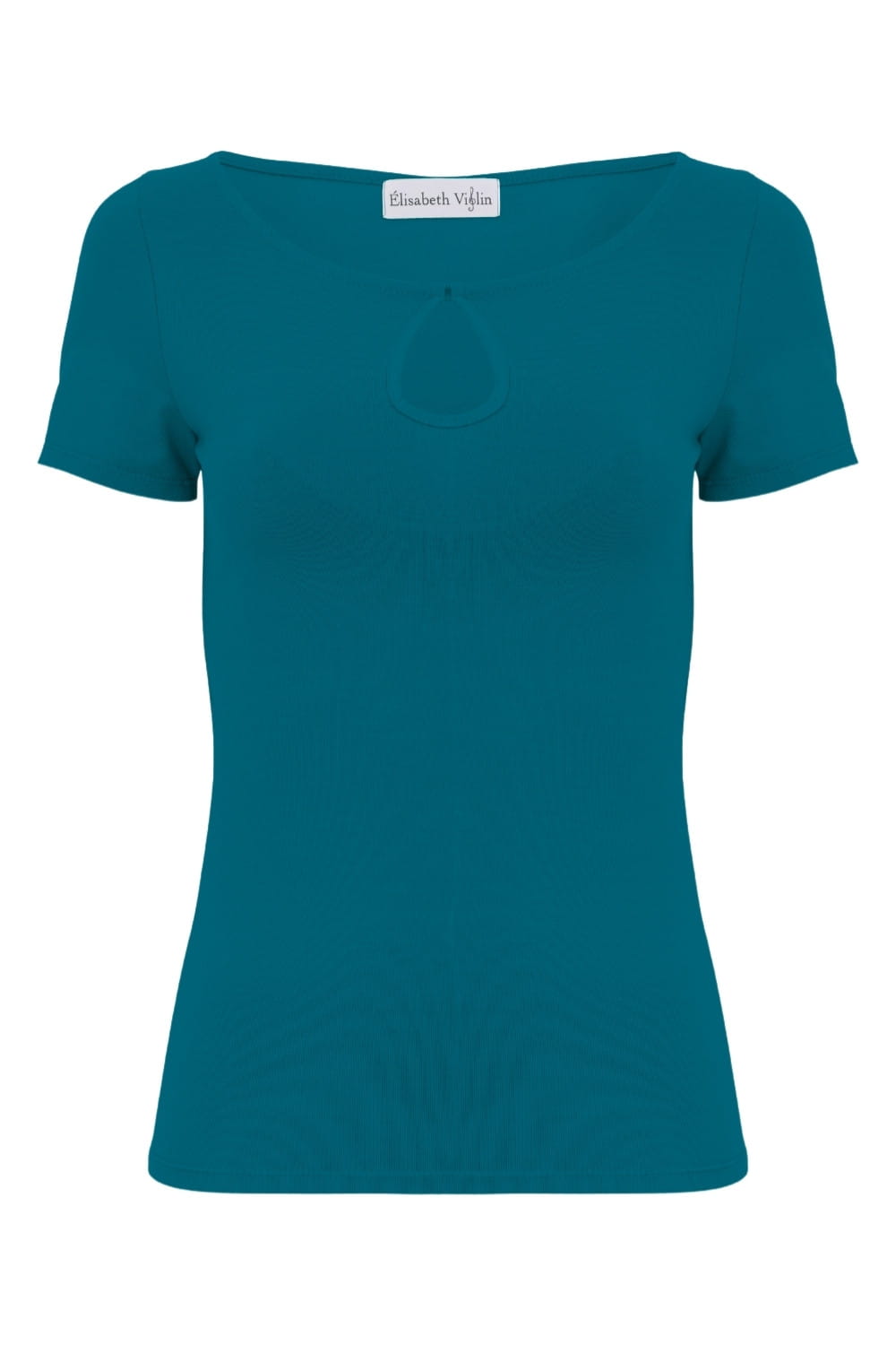 LARMA - Celestial - wiskozowa taliowana bluzka z dekoltem z łezką i klasycznymi krótkimi rękawami