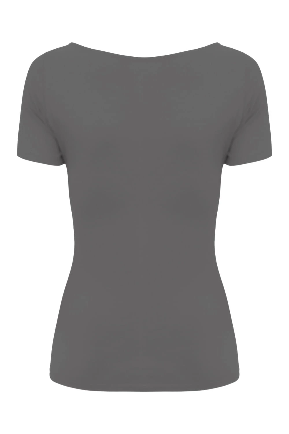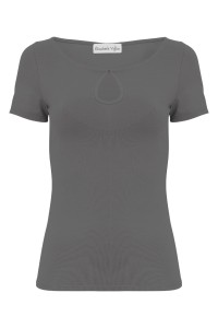 LARMA - Charcoal Gray - wiskozowa taliowana bluzka z dekoltem z łezką i klasycznymi krótkimi rękawami