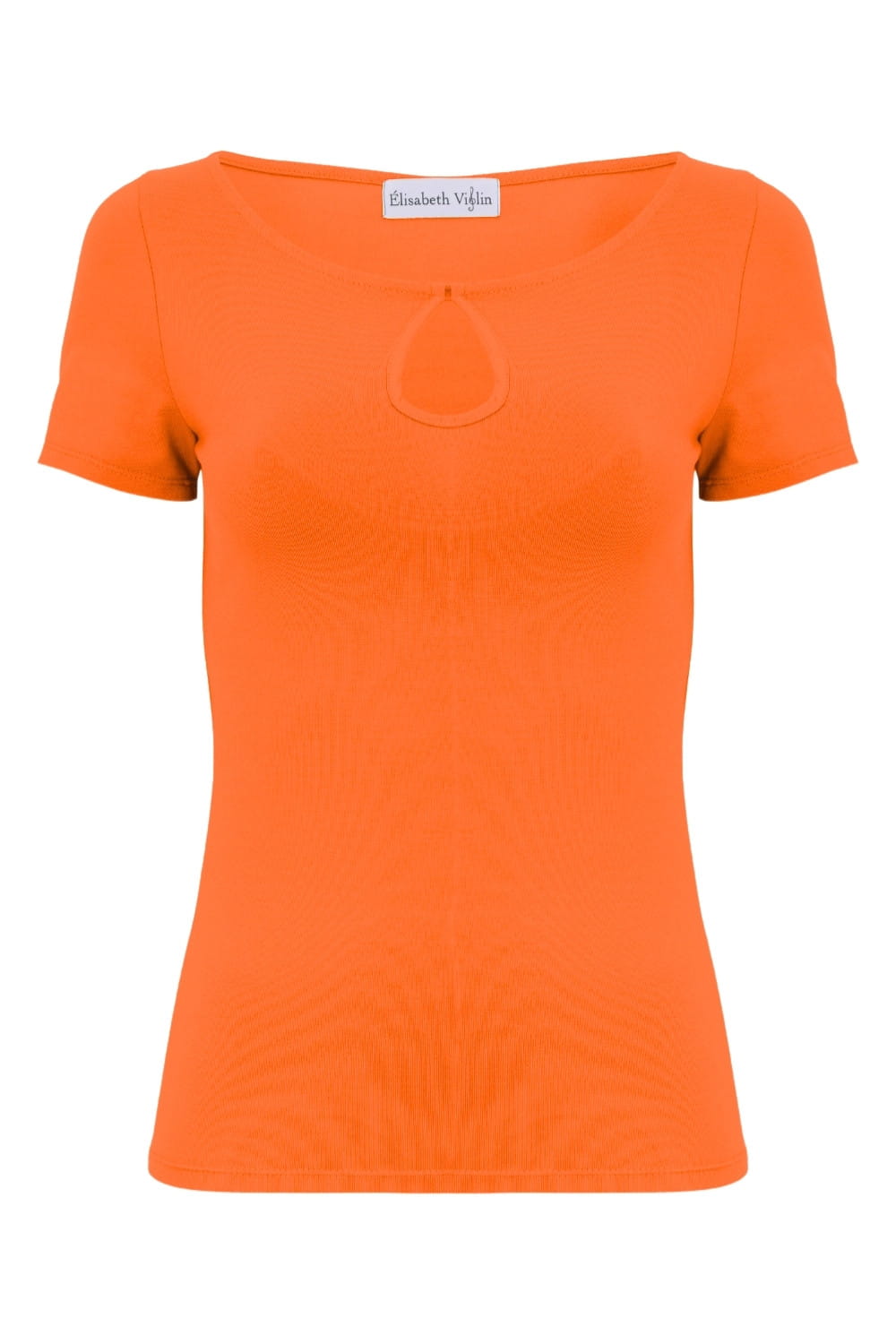LARMA - Dragon Fire - wiskozowa taliowana bluzka z dekoltem z łezką i klasycznymi krótkimi rękawami