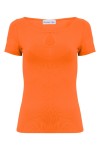 Dzianinowa bluzka z krótkim rękawem i dekoracyjnym wycięciem przy dekolcie.