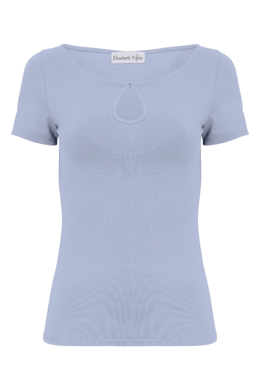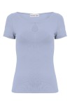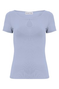 LARMA - Faded Denim - wiskozowa taliowana bluzka z dekoltem z łezką i klasycznymi krótkimi rękawami