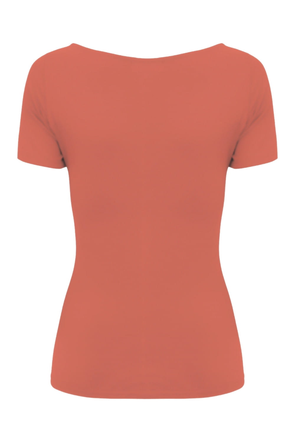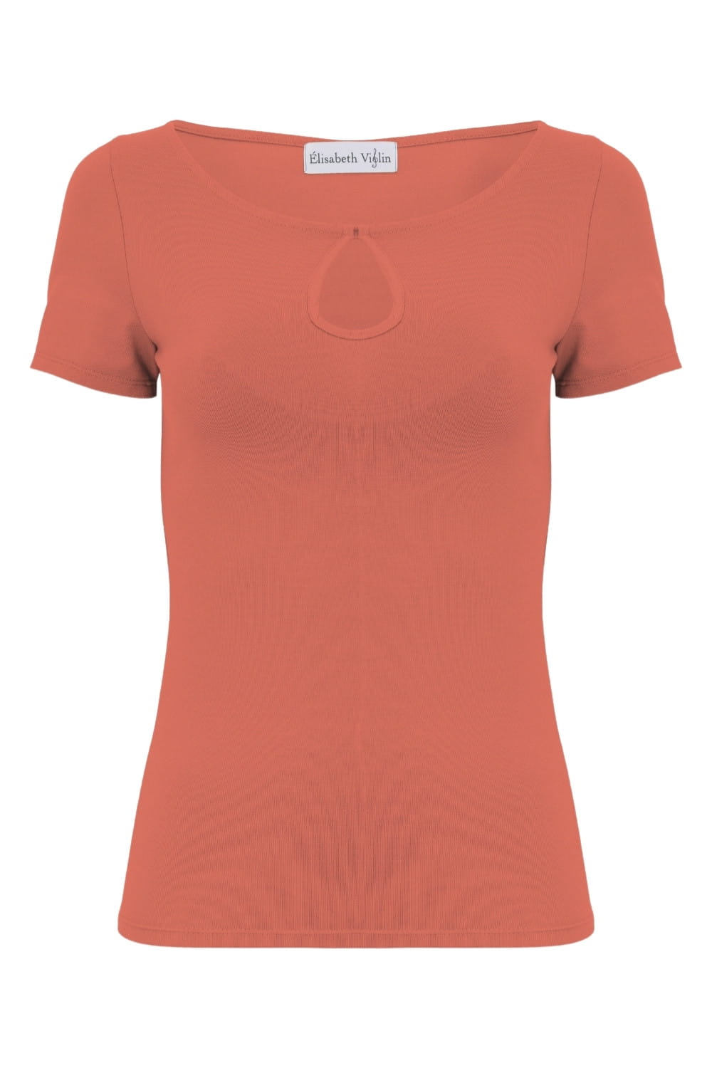 LARMA - Faded Rose - bambusowa taliowana bluzka z dekoltem z łezką i klasycznymi krótkimi rękawami