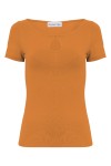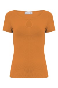 LARMA - Golden Ochre - bambusowa taliowana bluzka z dekoltem z łezką i klasycznymi krótkimi rękawami