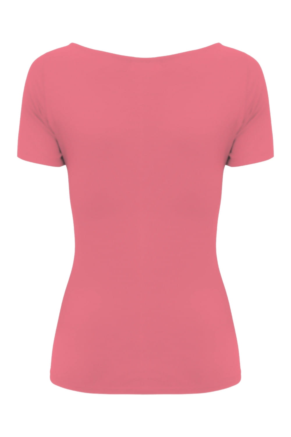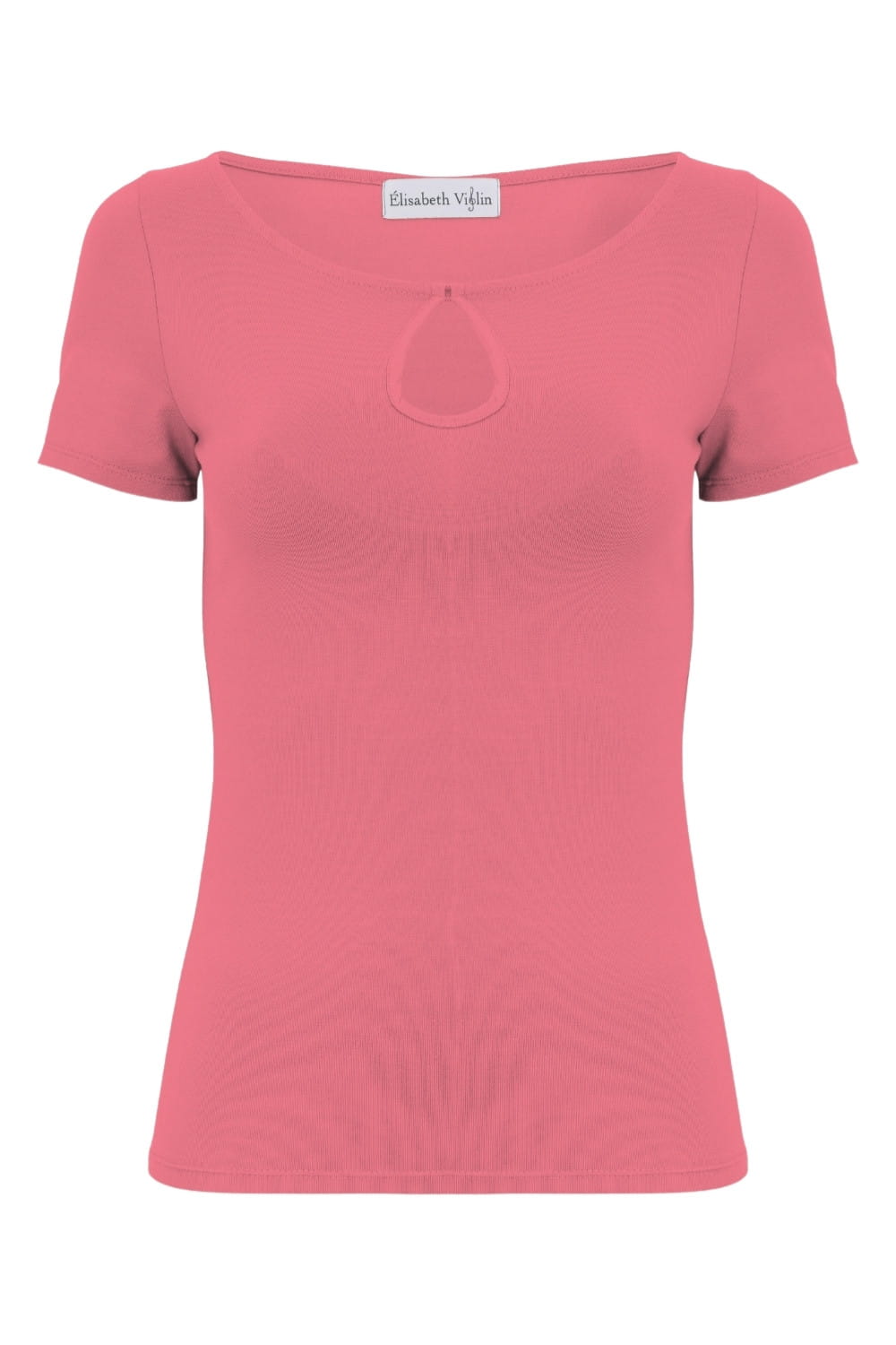 LARMA - Holly Berry - bambusowa taliowana bluzka z dekoltem z łezką i klasycznymi krótkimi rękawami