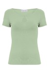 Dzianinowa bluzka z krótkim rękawem i dekoracyjnym wycięciem przy dekolcie.