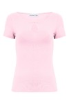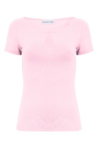 LARMA - Parfait Pink - bawełniana taliowana bluzka z dekoltem z łezką i klasycznymi krótkimi rękawami