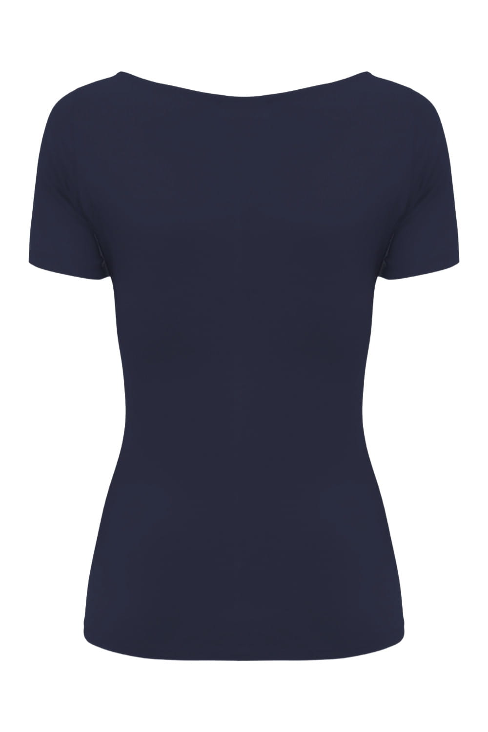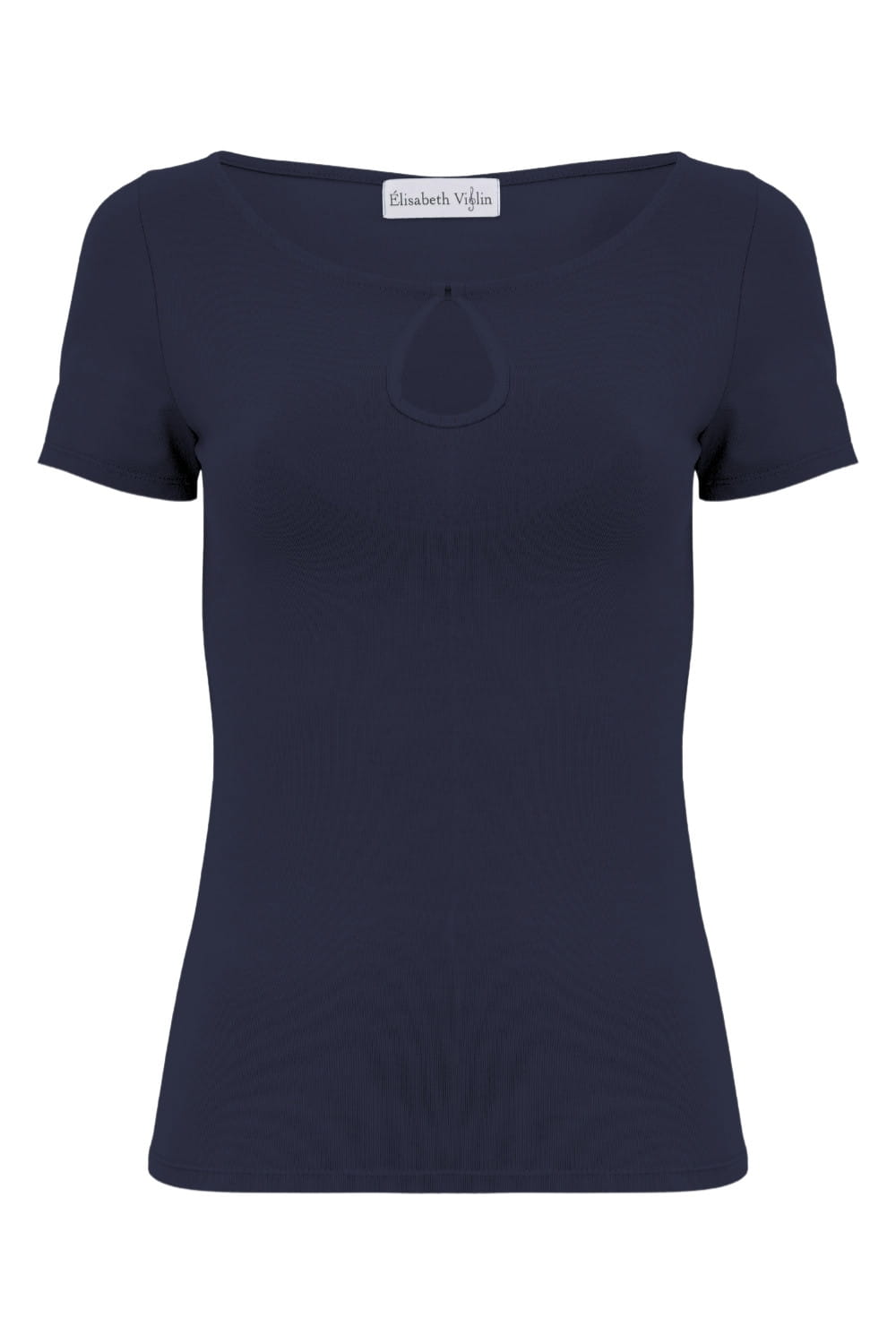 LARMA - Patriot Blue - wiskozowa taliowana bluzka z dekoltem z łezką i klasycznymi krótkimi rękawami