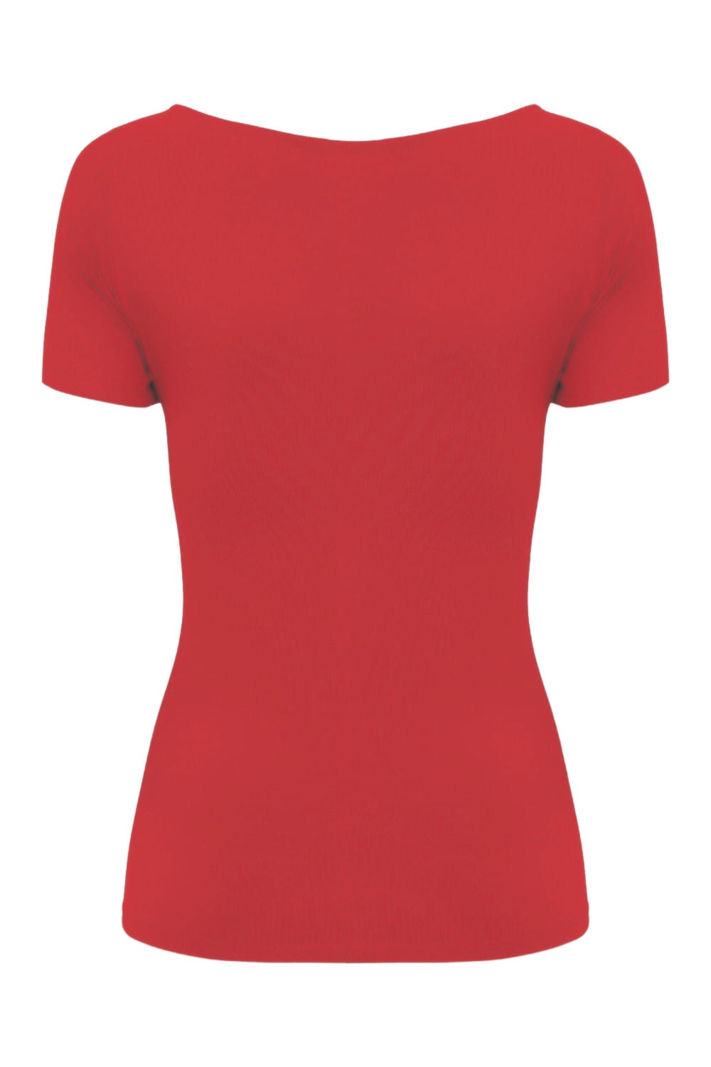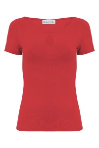 LARMA - Scarlet Sage - bawełniana taliowana bluzka z dekoltem z łezką i klasycznymi krótkimi rękawami