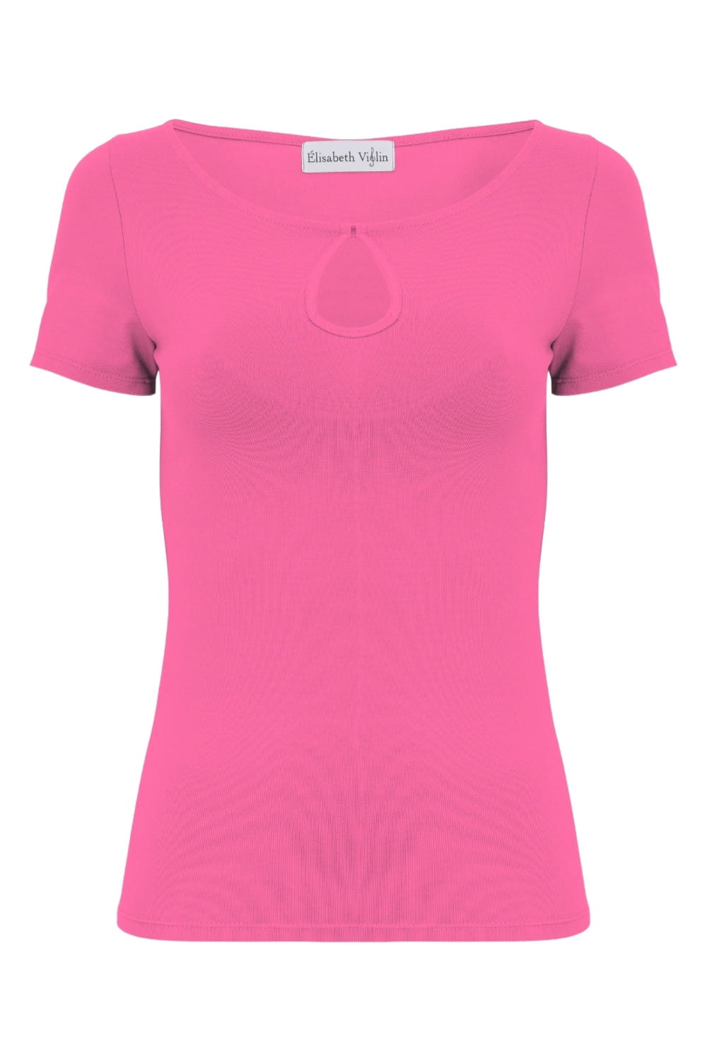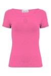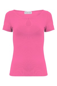 LARMA - Shocking Pink - bawełniana taliowana bluzka z dekoltem z łezką i klasycznymi krótkimi rękawami