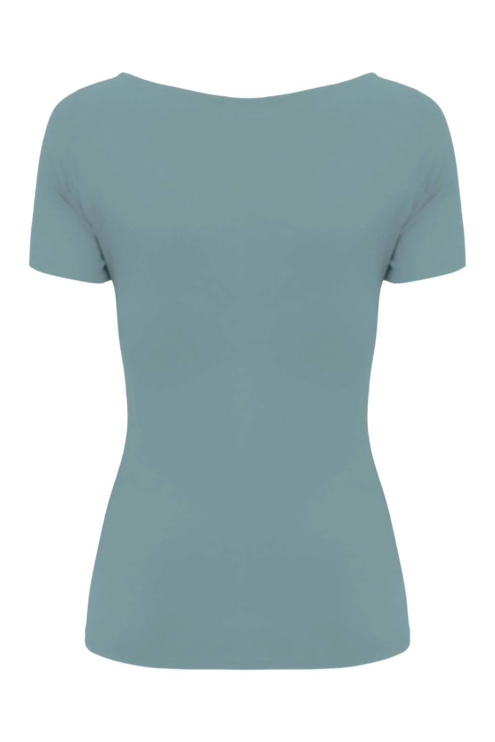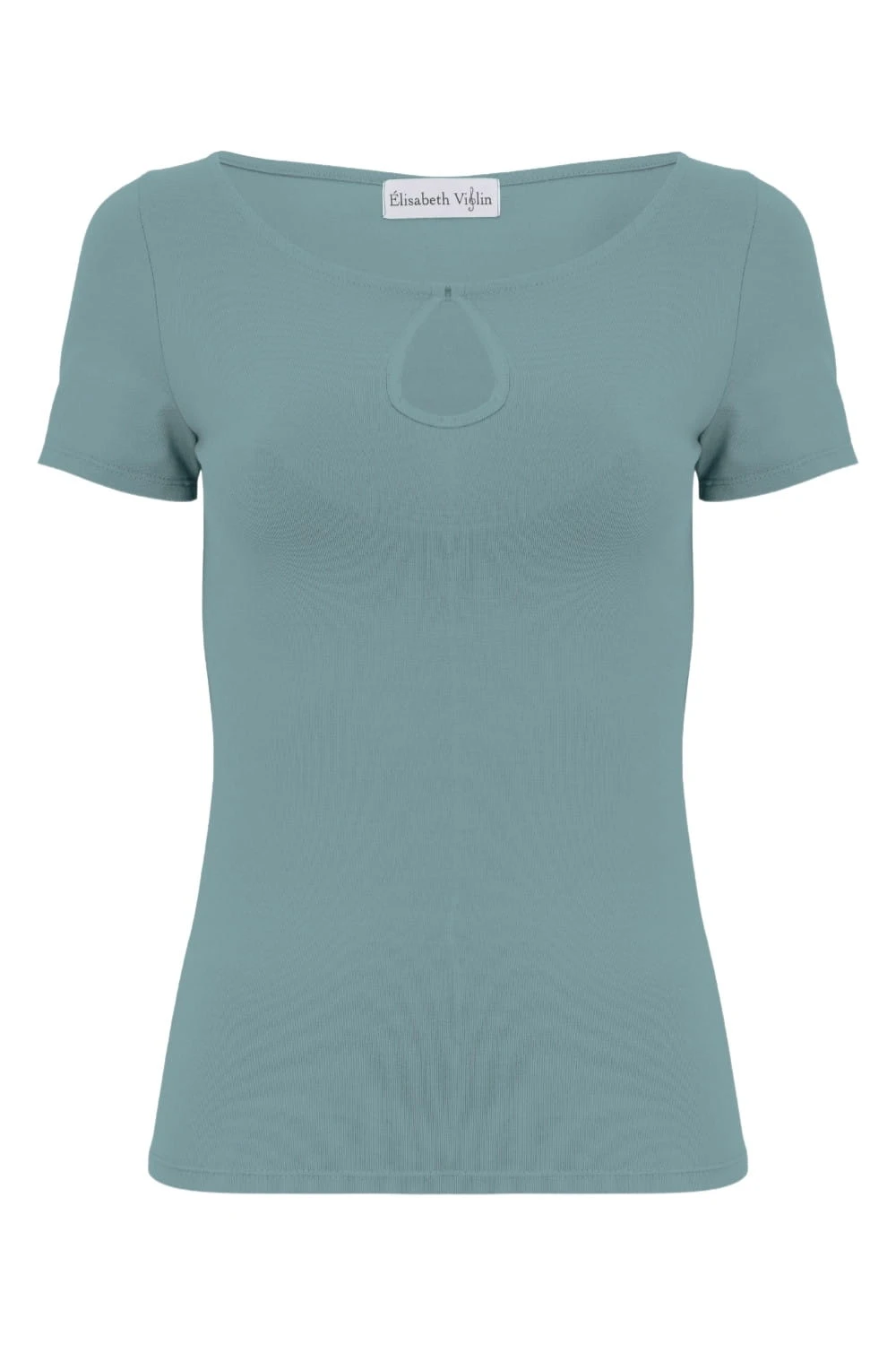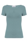 LARMA - Smoke Blue - bawełniana taliowana bluzka z dekoltem z łezką i klasycznymi krótkimi rękawami