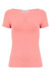Dzianinowa bluzka z krótkim rękawem i dekoracyjnym wycięciem przy dekolcie.