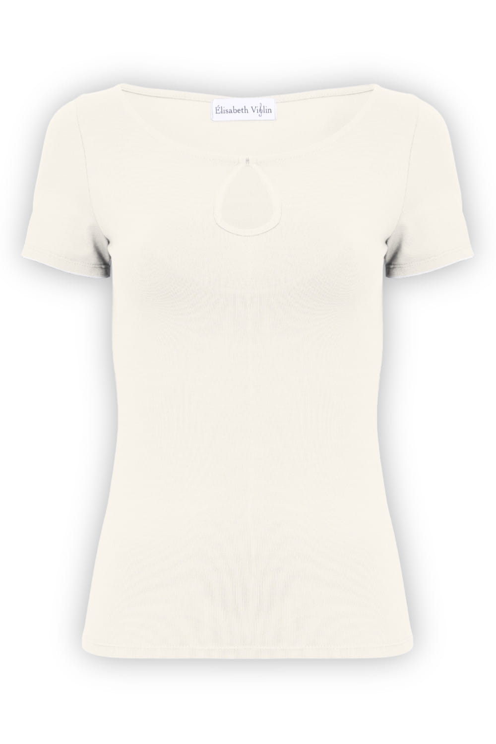 LARMA - Vanilla Ice - bawełniana taliowana bluzka z dekoltem z łezką i klasycznymi krótkimi rękawami