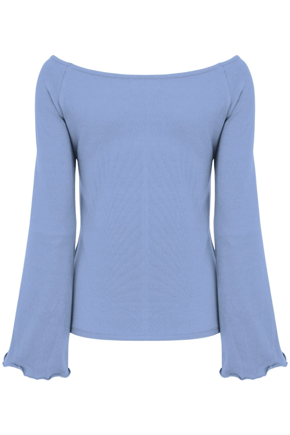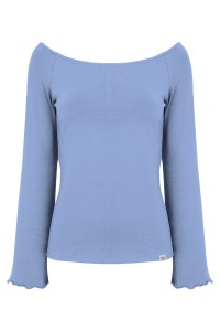LAURA - Allure - bawełniana taliowana bluzka z długimi reglanowymi rękawkami typu dzwonek z szerokim dekoltem w łódkę