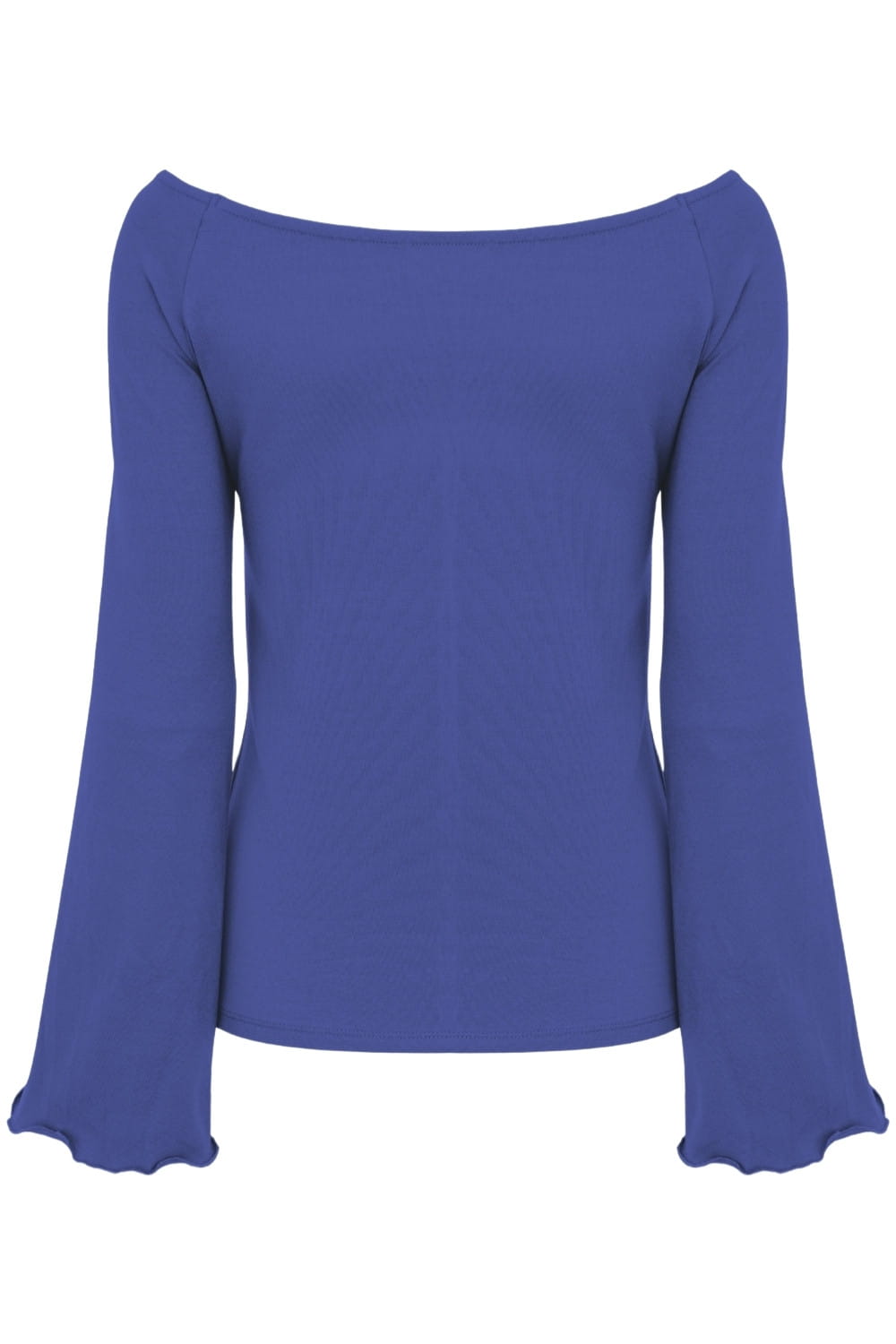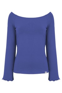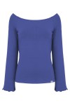 LAURA - Amparo Blue - wiskozowa taliowana bluzka z długimi reglanowymi rękawkami typu dzwonek z szerokim dekoltem w łódkę