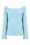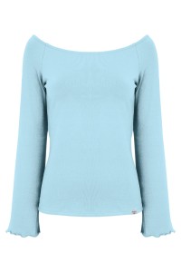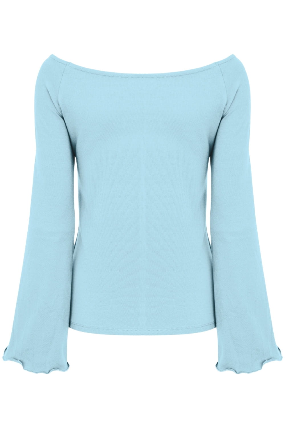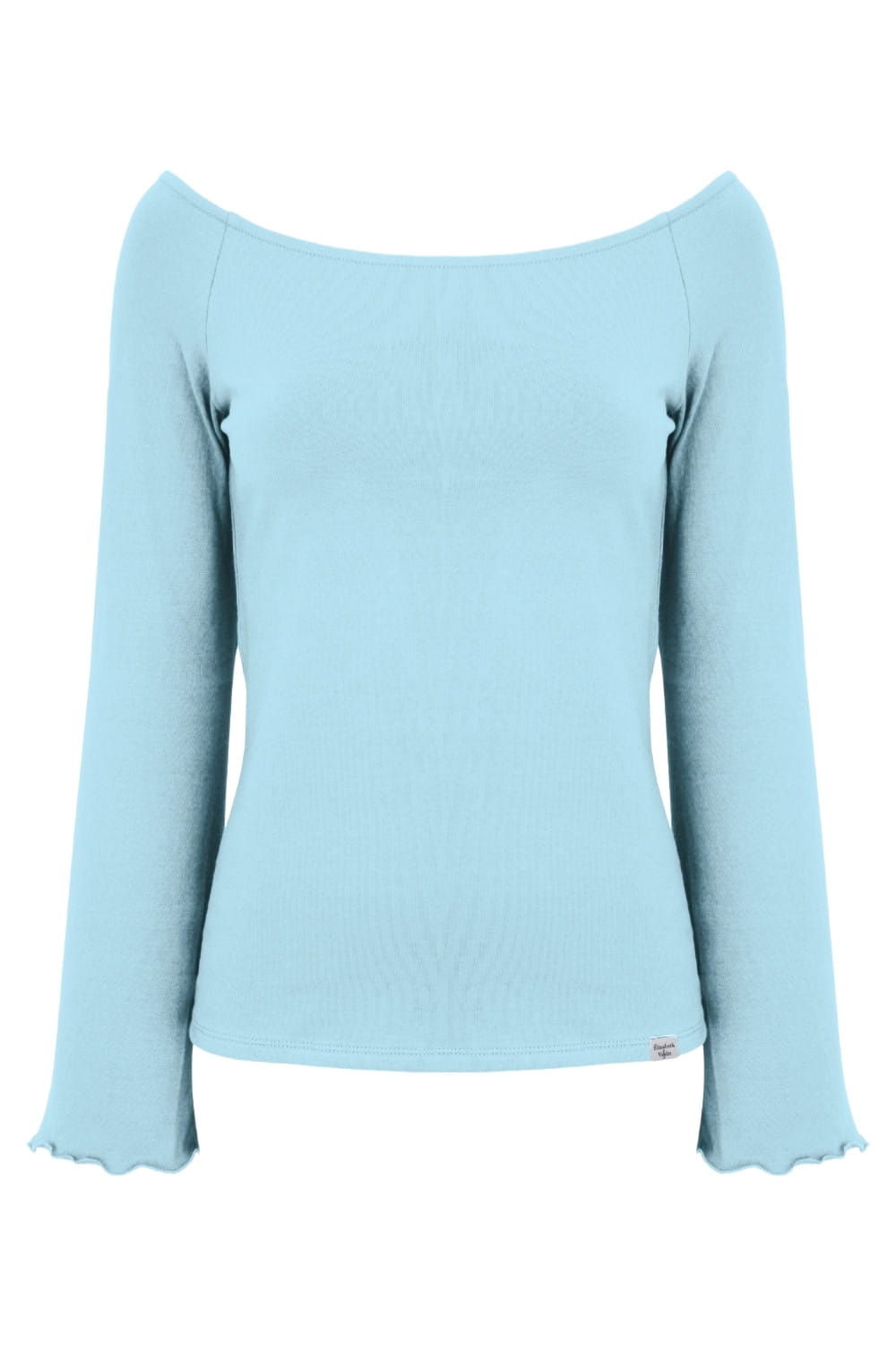 LAURA - Aquatic - wiskozowa taliowana bluzka z długimi reglanowymi rękawkami typu dzwonek z szerokim dekoltem w łódkę
